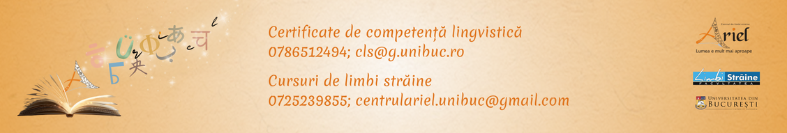Înscrierea la modulele de nivel elementar, pre-mediu, mediu și avansat este condiționată de susținerea unui test pentru evaluarea nivelului lingvistic. Documentul poate fi descărcat din secțiunea aferentă cursului vizat de pe site-ul nostru. Alternativ, testul poate fi solicitat prin e-mail, la adresa: centrulariel.unibuc@gmail.com.